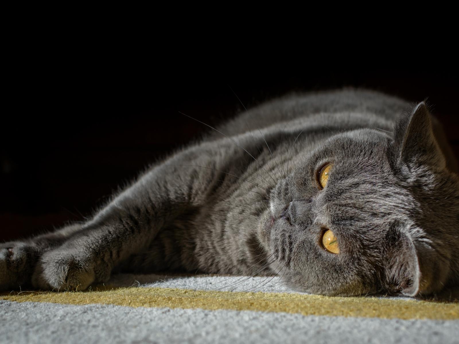 Wallpaper British cat lies on a carpet on a black background