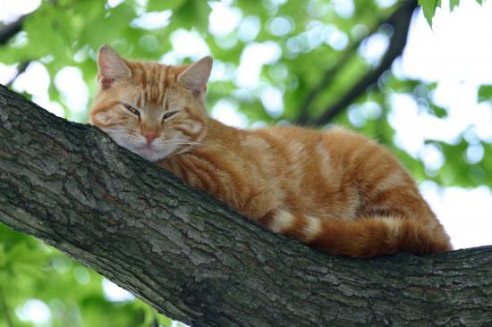» Wallpaper Red cat sleeps on a tree branch