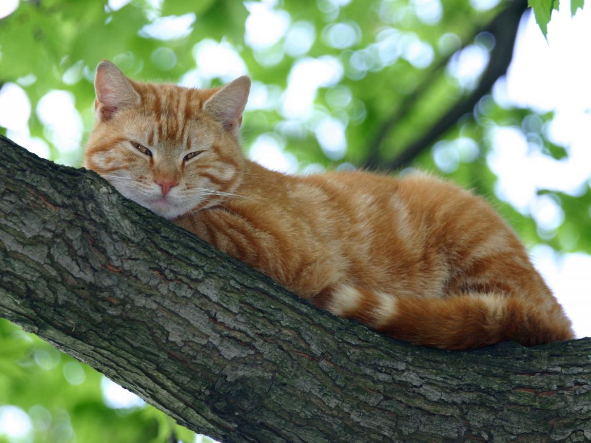 » Wallpaper Red cat sleeps on a tree branch