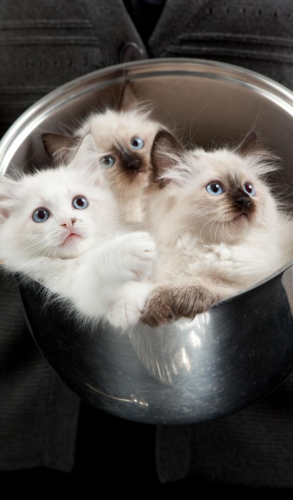 Wallpaper Beautiful thoroughbred kittens in a pan