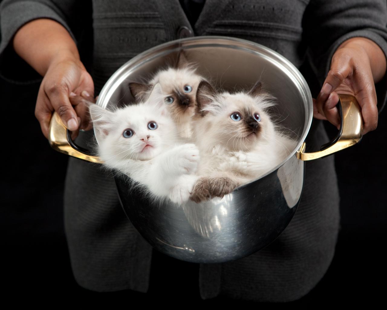 Wallpaper Beautiful thoroughbred kittens in a pan