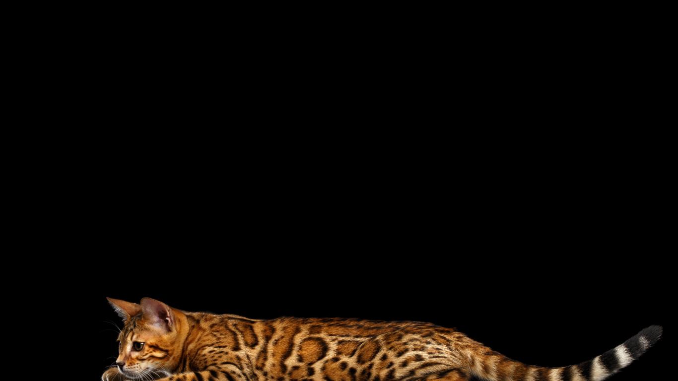 » Wallpaper Bengal cat on a black background