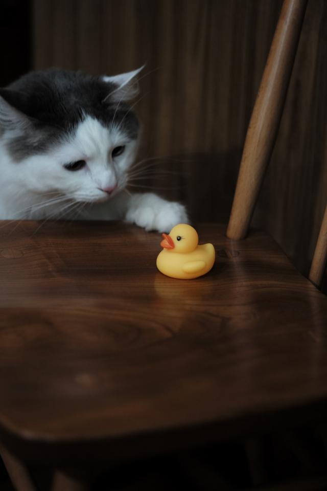 Wallpaper Cat with yellow rubber stitch on chair