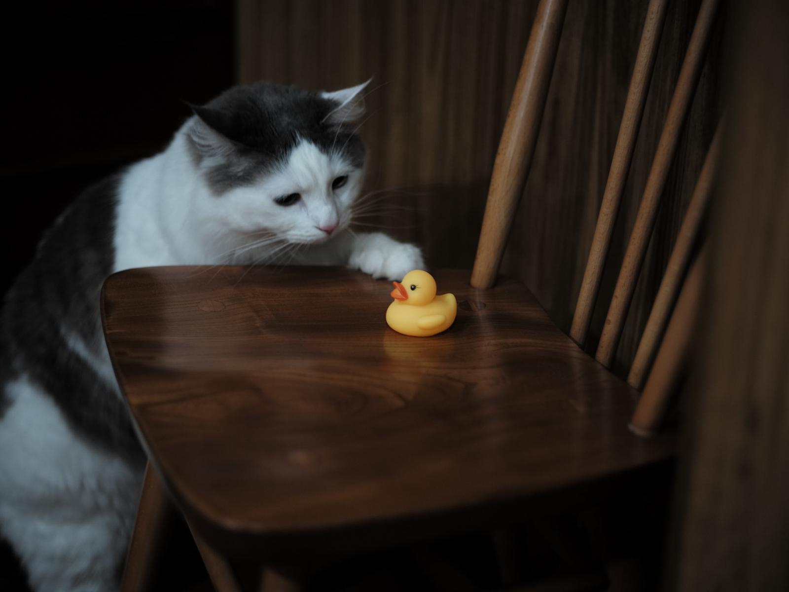 Wallpaper Cat with yellow rubber stitch on chair