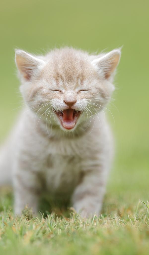 Wallpaper Little red-haired kitten on green grass