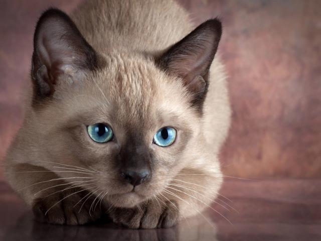 Wallpaper Beautiful blue eyed siamese cat sitting on the table