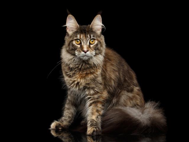 Wallpaper Large gray cat Maine Coon on a black background
