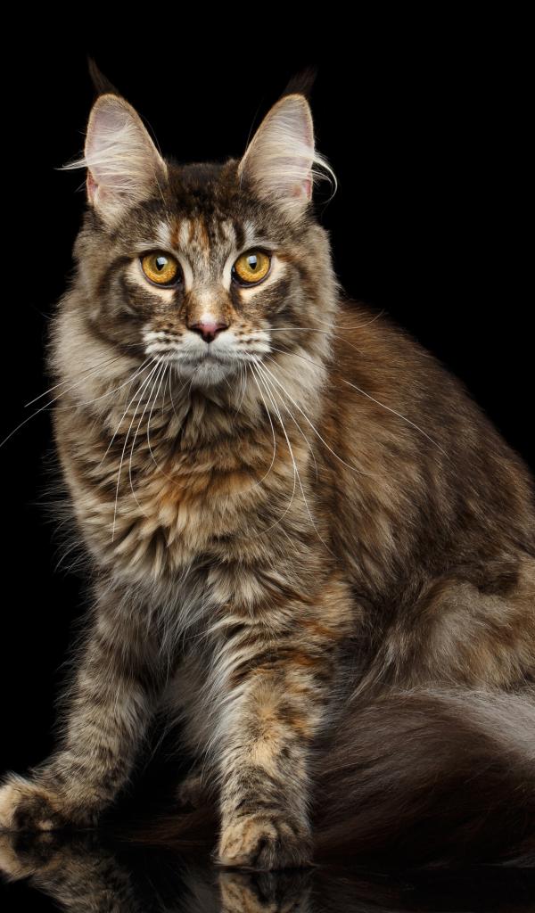 Wallpaper Large gray cat Maine Coon on a black background