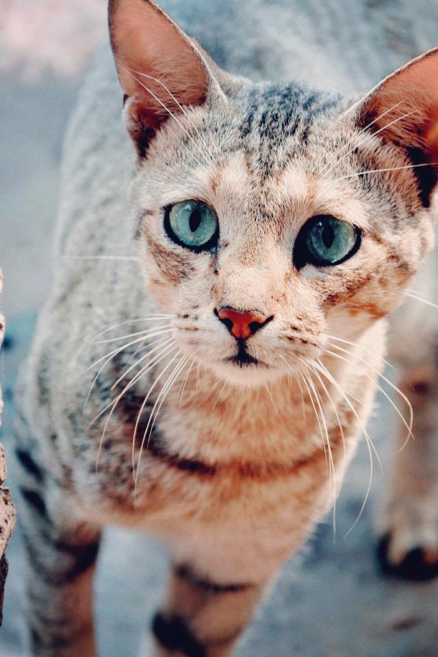 Wallpaper Blue-eyed gray cat with a sad look