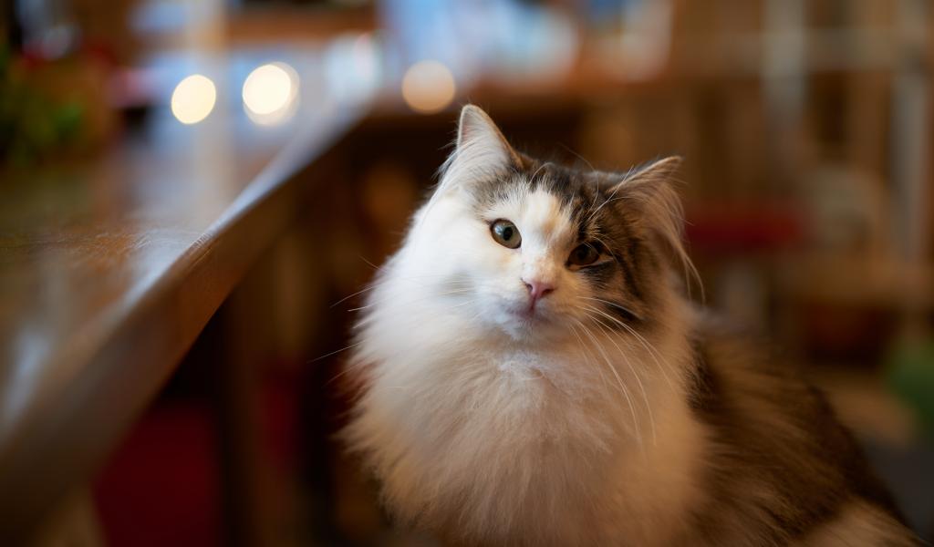 Wallpaper Fluffy beautiful cat sitting by the table
