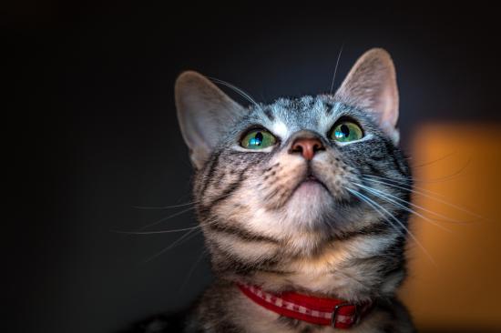 Wallpaper Gray green-eyed cat with a collar