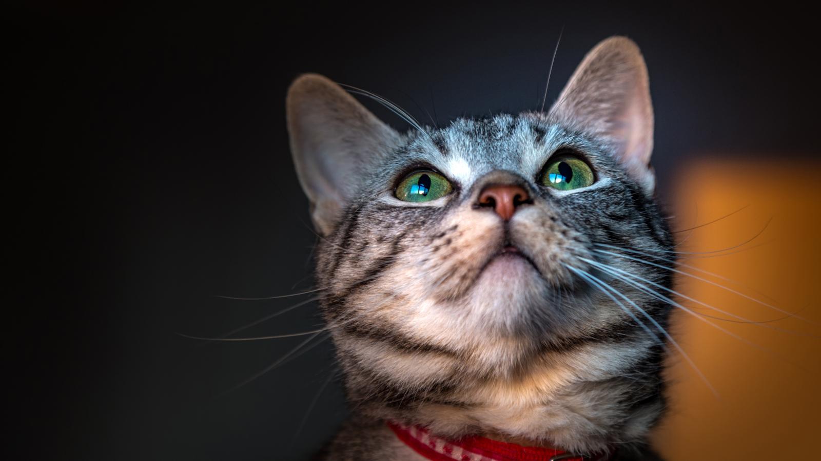 Wallpaper Beautiful green-eyed gray cat with a collar
