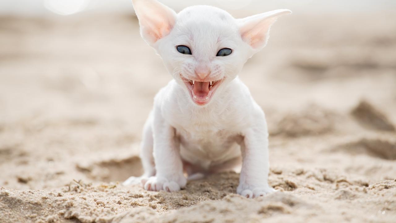 Wallpaper White small kitten of the Cornish Rex breed