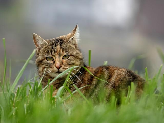 Wallpaper Beautiful gray cat in a green grass