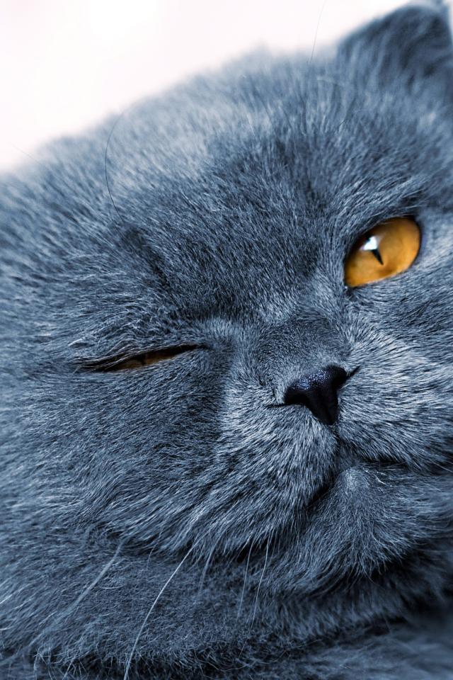 » Wallpaper Gray British cat winks with an eye