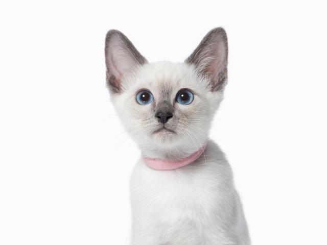 Wallpaper Beautiful blue-eyed purebred kitten on a white background