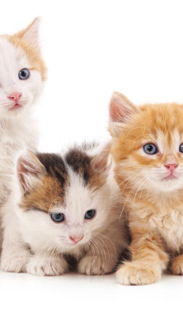 Wallpaper Three little cute kittens under the Christmas hat on a white background