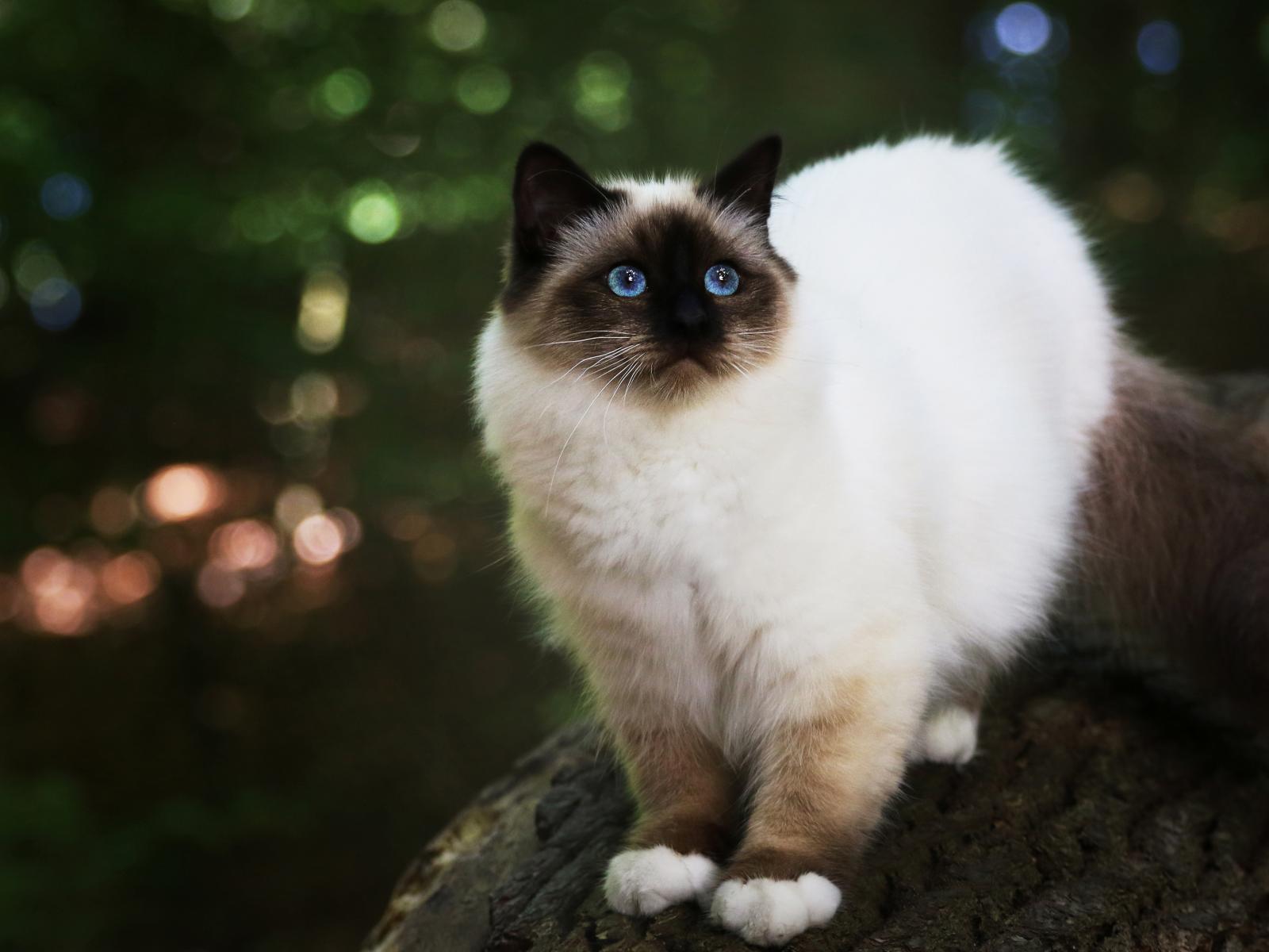 Wallpaper Burmese cat with blue eyes on a tree