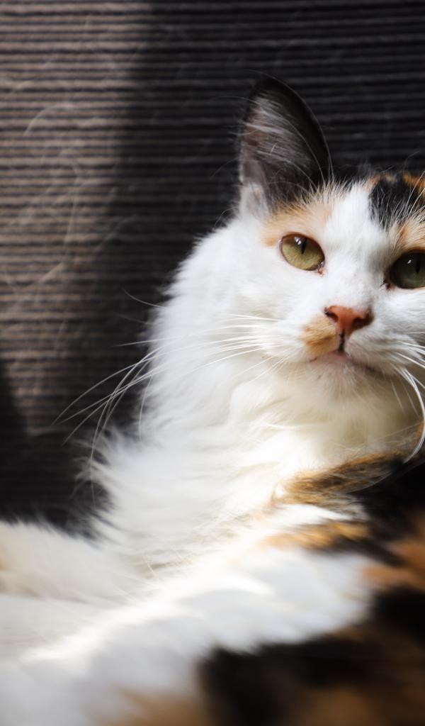 Wallpaper Tricolor cat basks in the sun