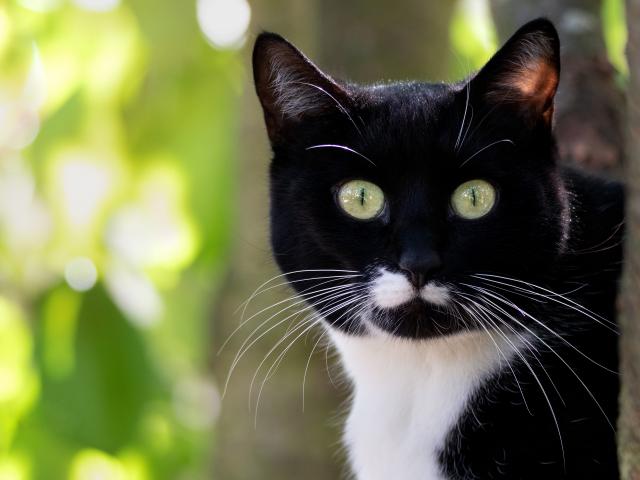 Wallpaper Frightened black and white cat with long whiskers