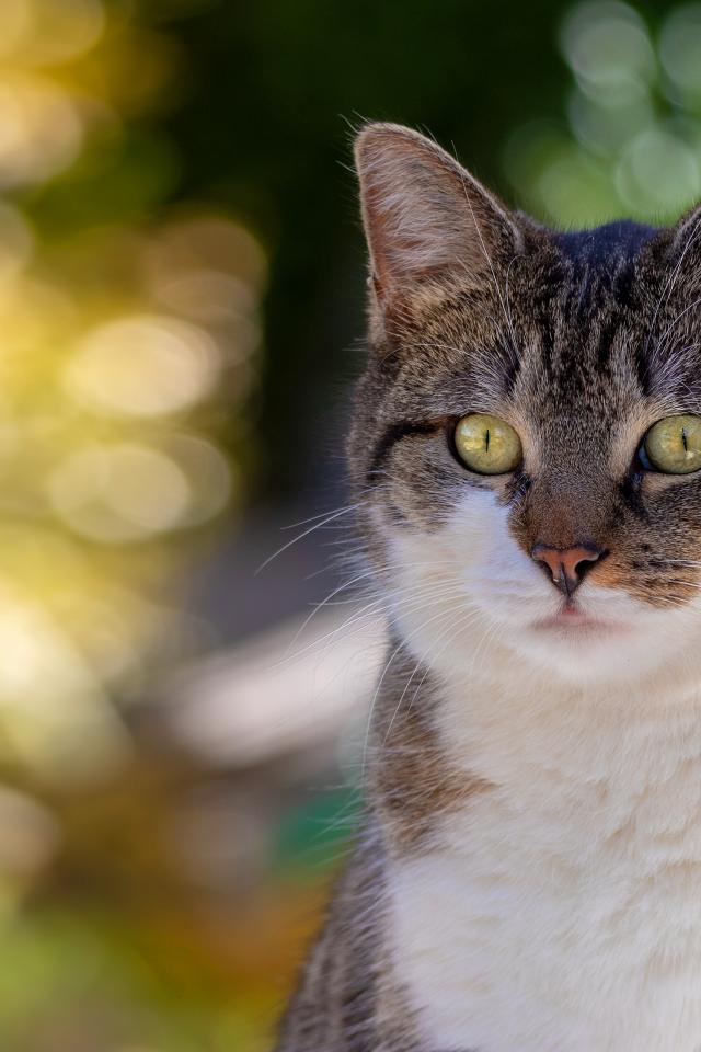 Wallpaper Curious glance of a green-eyed gray and white cat
