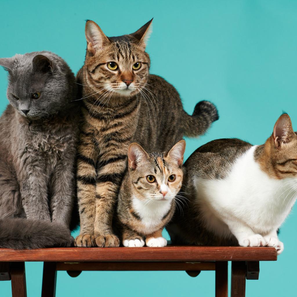 Wallpaper Cats are sitting on a wooden bench on a blue background