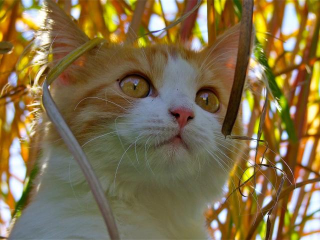 Wallpaper Beautiful kitten with yellow eyes sitting in the grass