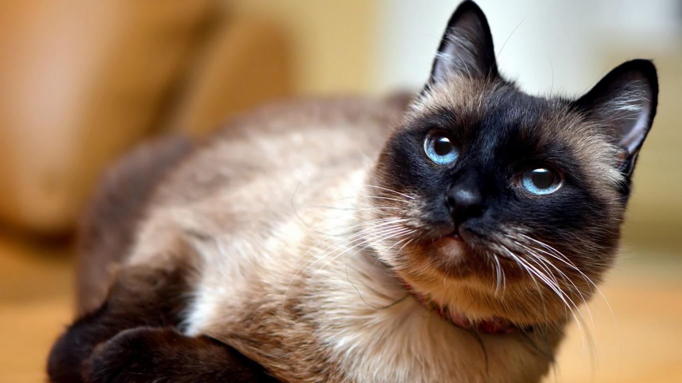Wallpaper Beautiful Siamese blue-eyed cat with a collar