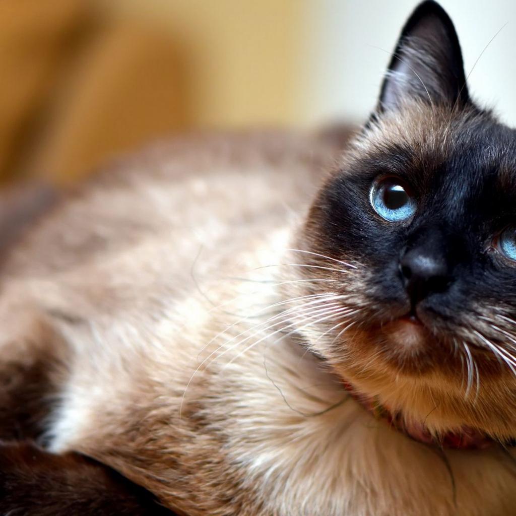 Wallpaper Beautiful Siamese blue-eyed cat with a collar