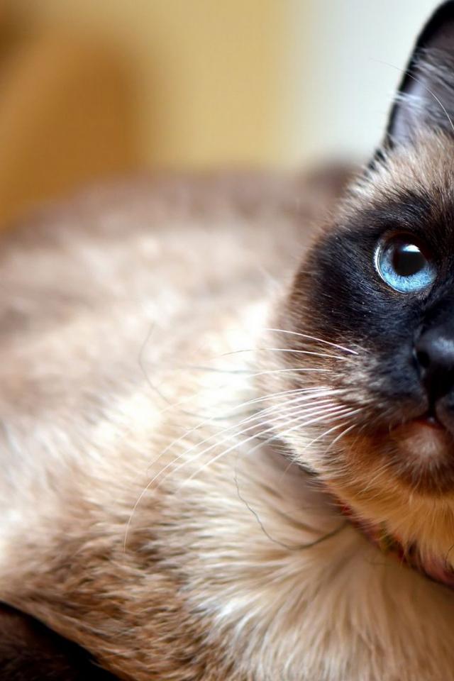 Wallpaper Beautiful Siamese blue-eyed cat with a collar