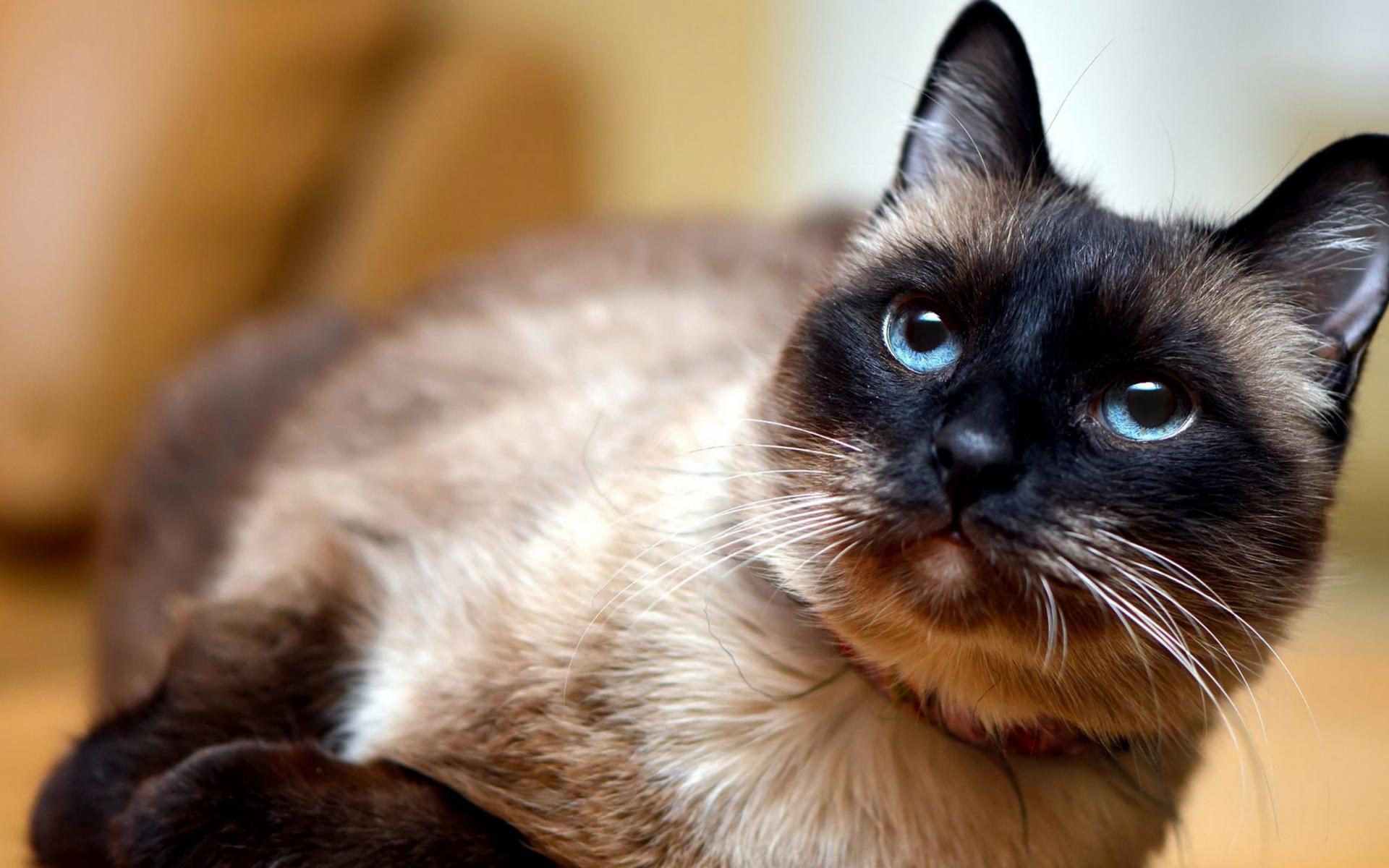 Wallpaper Beautiful Siamese blue-eyed cat with a collar