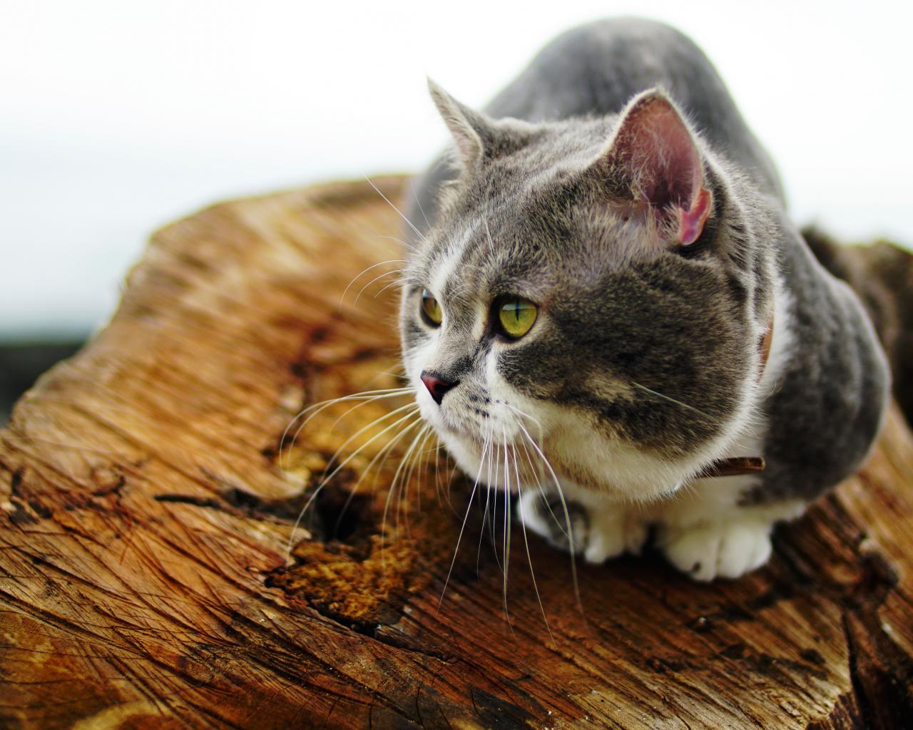 Wallpaper The purebred green-eyed cat sits on a dry tree