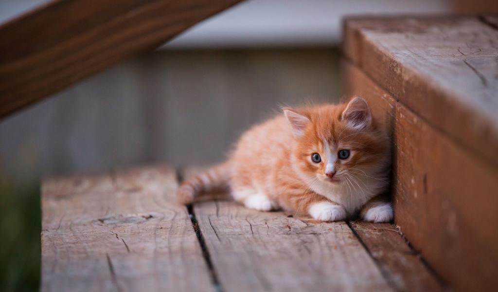 Wallpaper Little beautiful red kitten on a wooden threshold