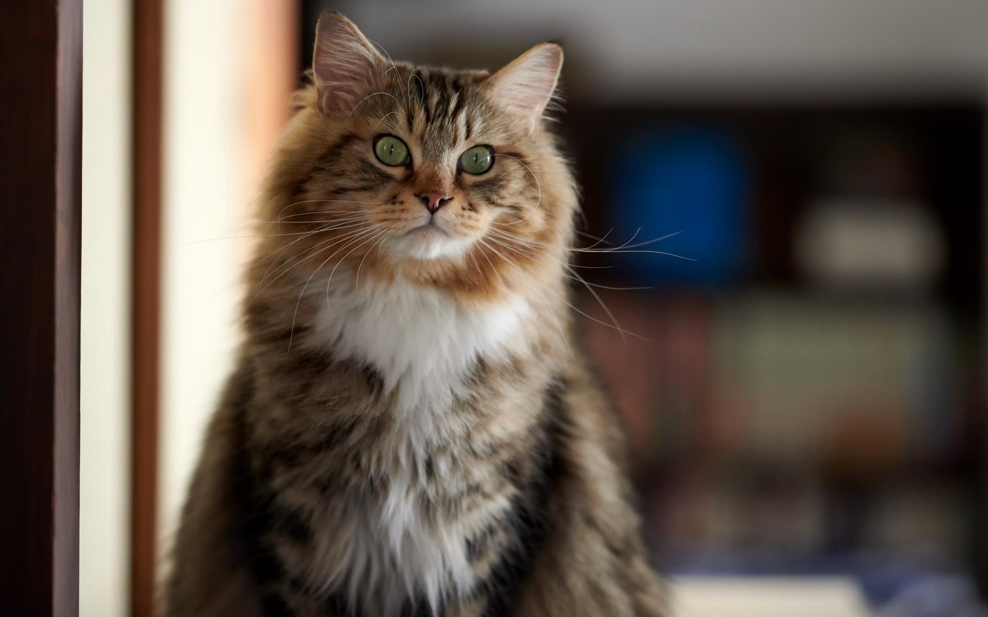 Wallpaper Big fluffy cat with green eyes