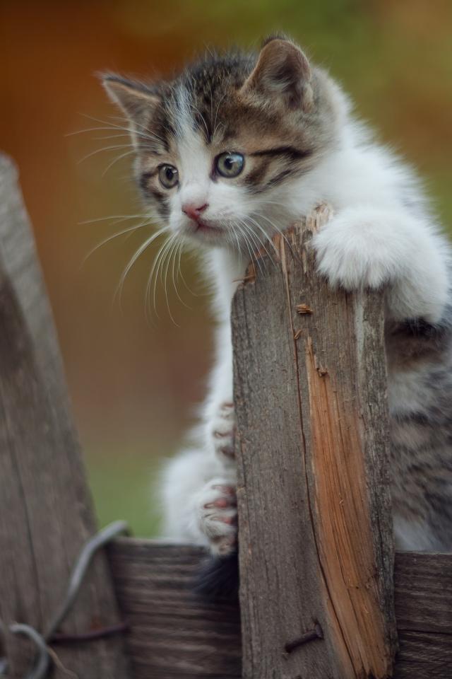 Wallpaper Little funny kitten on the fence
