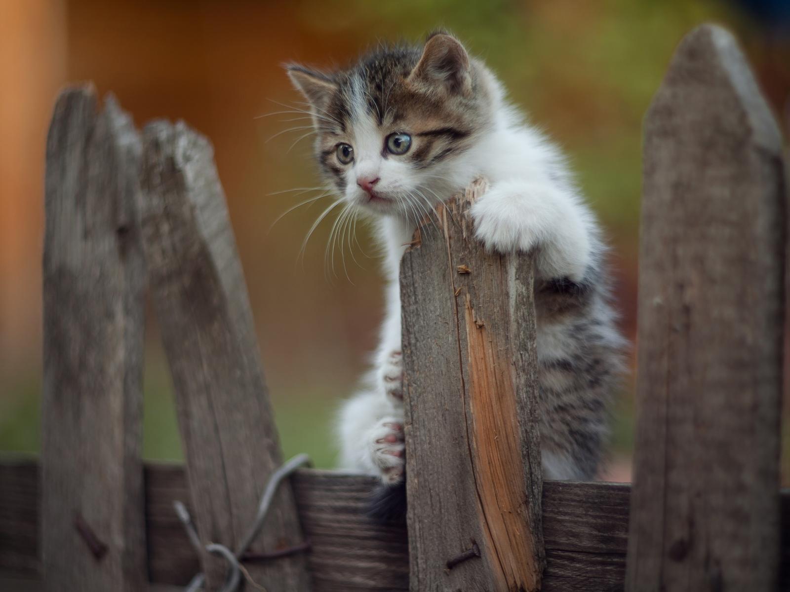 Wallpaper Little funny kitten on the fence