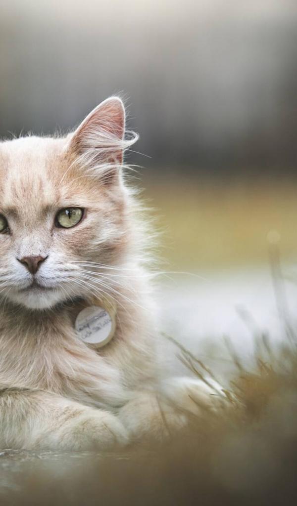 Wallpaper Ginger green-eyed cat lying on the ground