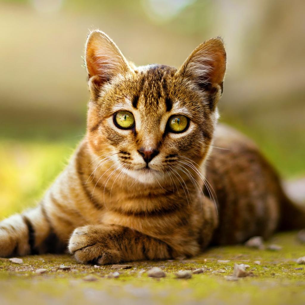 Wallpaper Gray cat lying on the ground