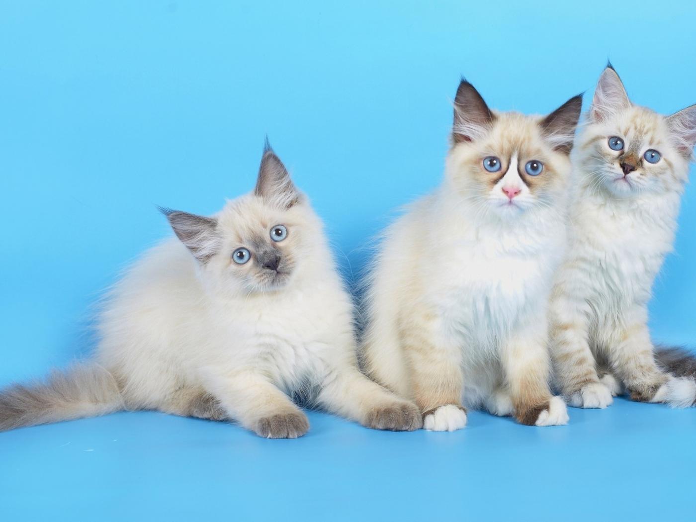 Wallpaper Three purebred kittens on a blue background