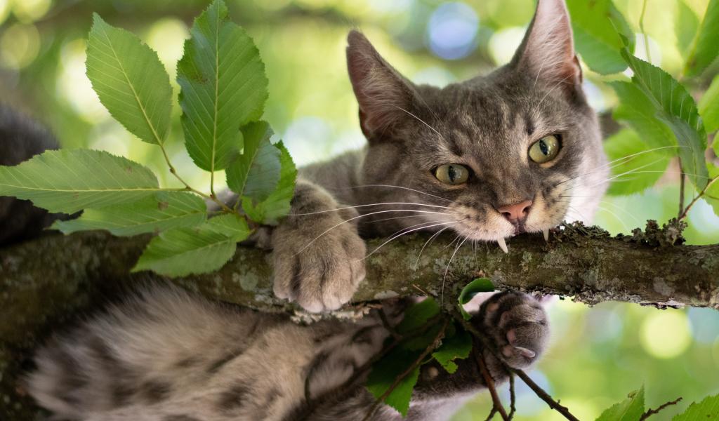 Wallpaper Gray cat nibbles a branch