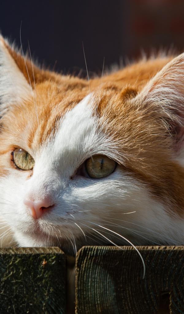 Wallpaper Red and white cat lying on the boards