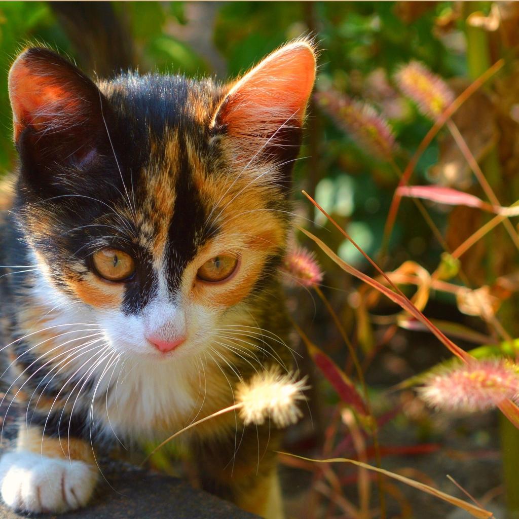 Wallpaper Tricolor kitten sitting in the grass