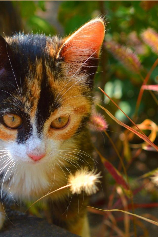 Wallpaper Tricolor kitten sitting in the grass