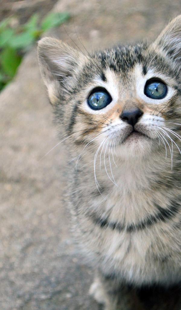 Wallpaper Cute fluffy gray kitten with big eyes in flowers