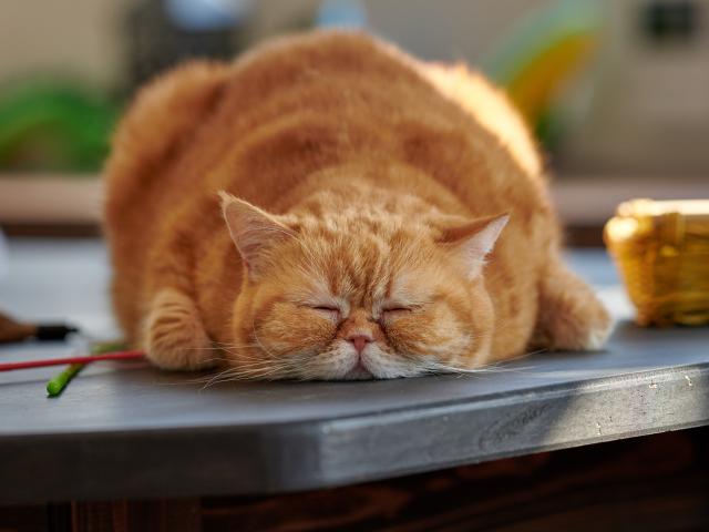 Wallpaper Big purebred red cat lying on the table
