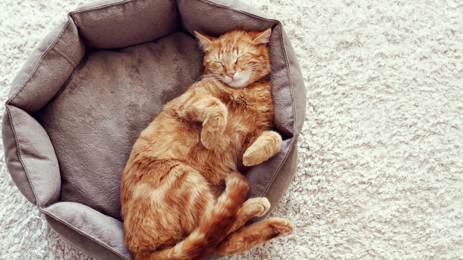 Wallpaper Red cat sleeping in bed