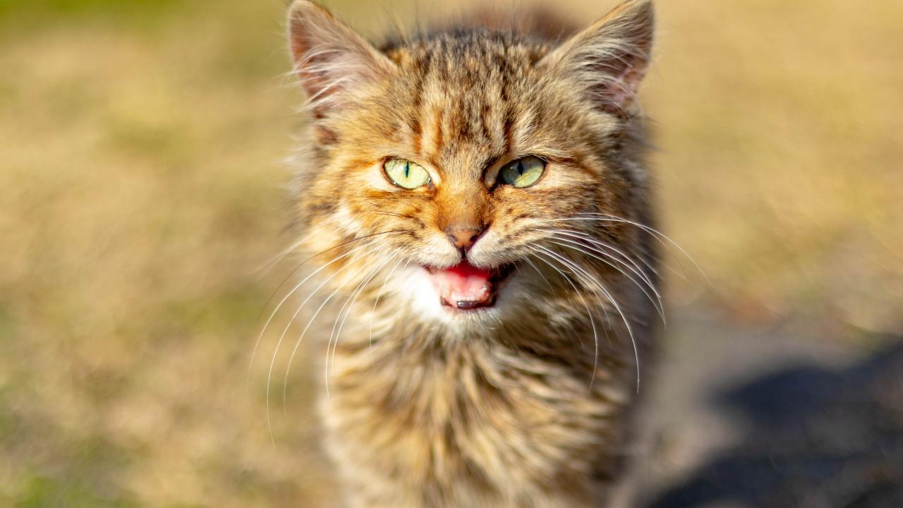 Wallpaper Gray cat meows