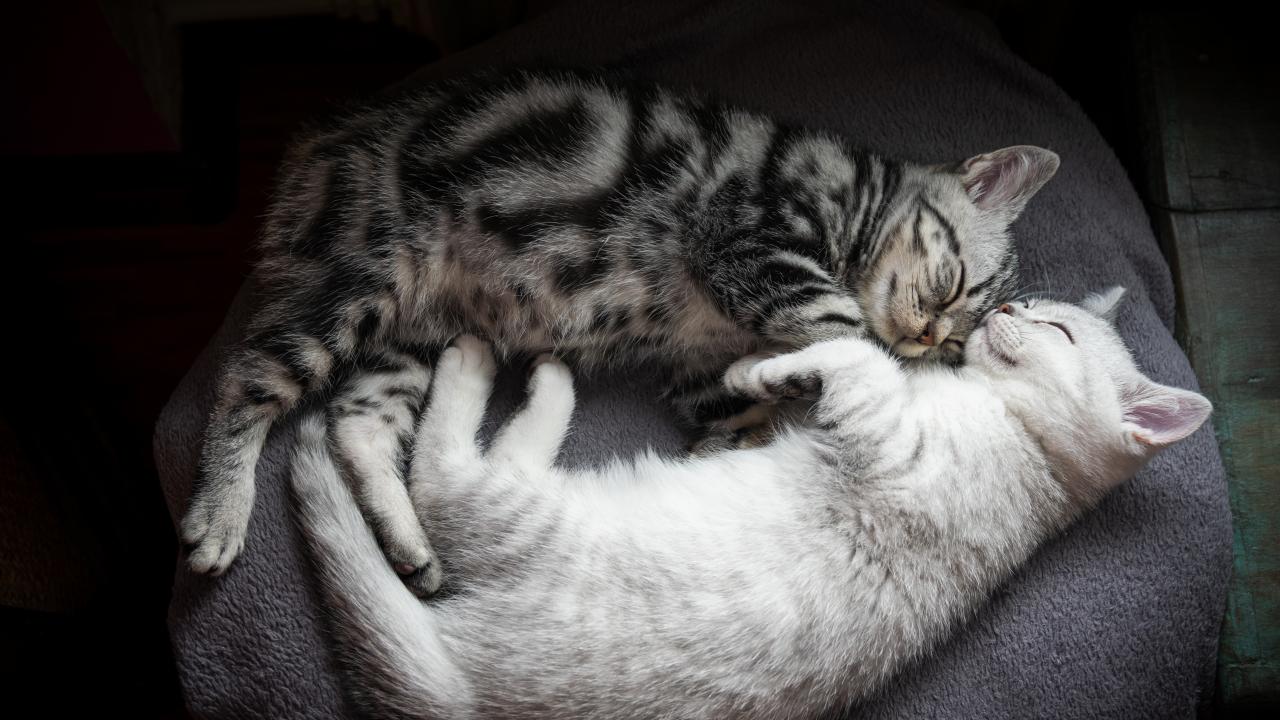 Wallpaper Two cute purebred kittens sleep on the bed