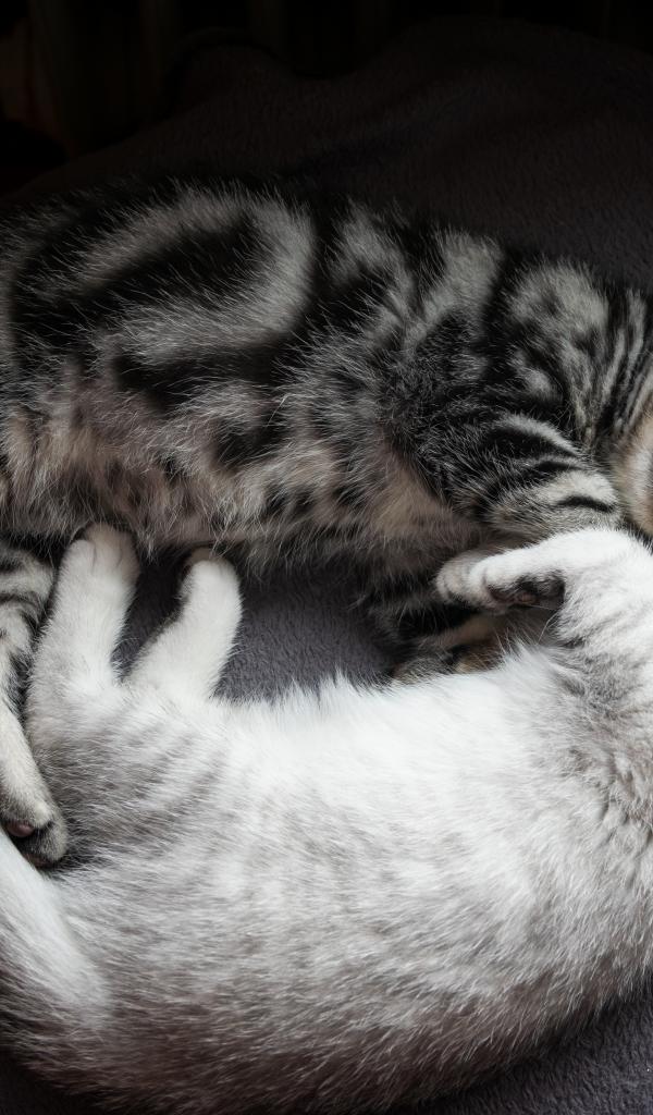 Wallpaper Two cute purebred kittens sleep on the bed
