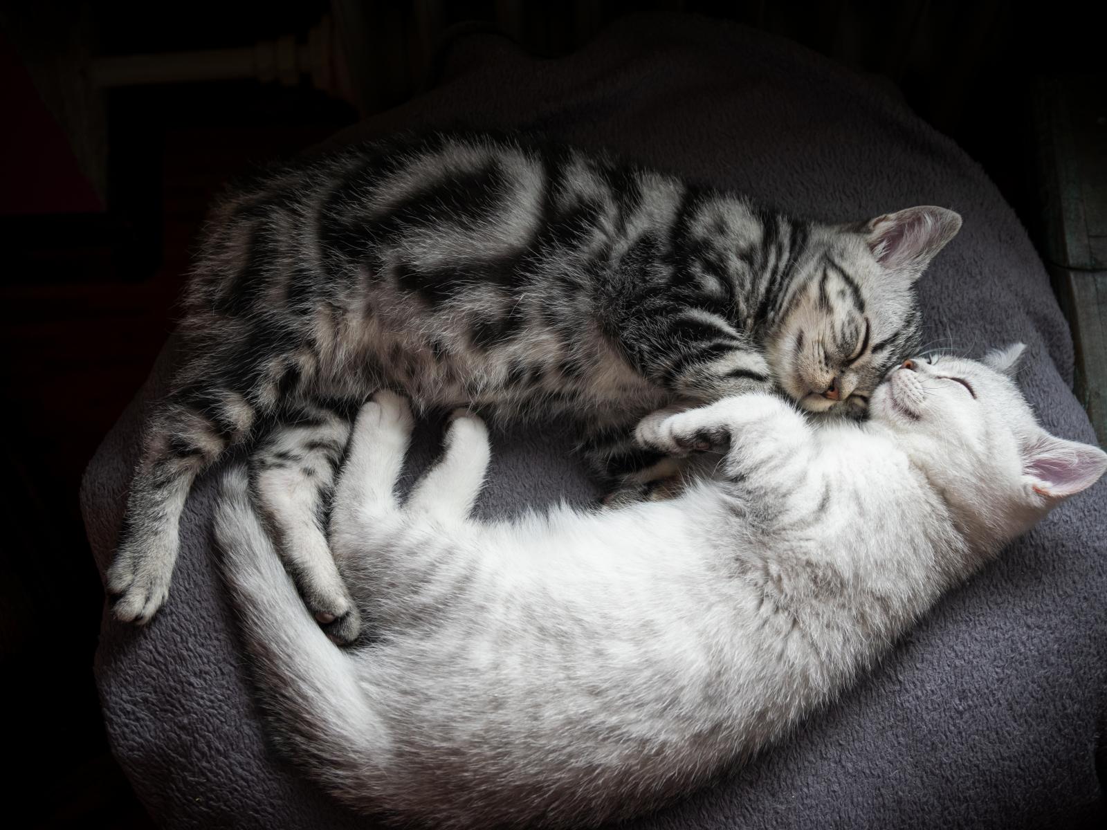 Wallpaper Two cute purebred kittens sleep on the bed
